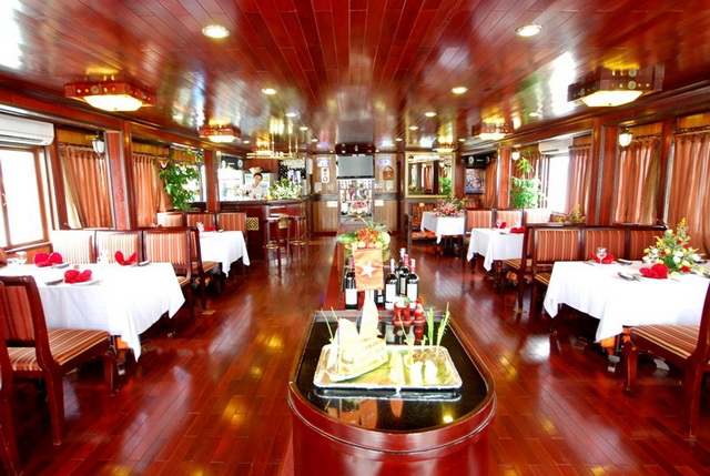 09:30: Check-out cabins and settle bills – Luggage collection. Having international buffet brunch served while cruising through. Bai Tu Long bay, Bai Tho mountain and Ha Long market.