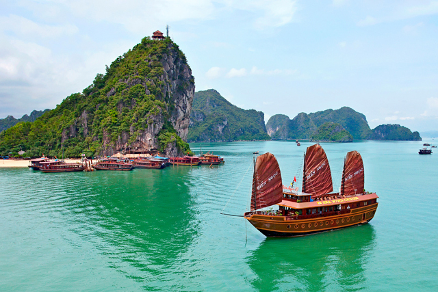 07h30 - 08.00: Breakfast is served and visit Titop island to relax at the beach and climb to the top of the mountain to view the panorama of the Halong Bay.