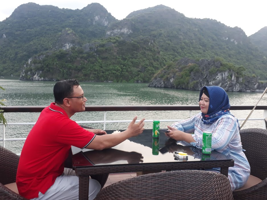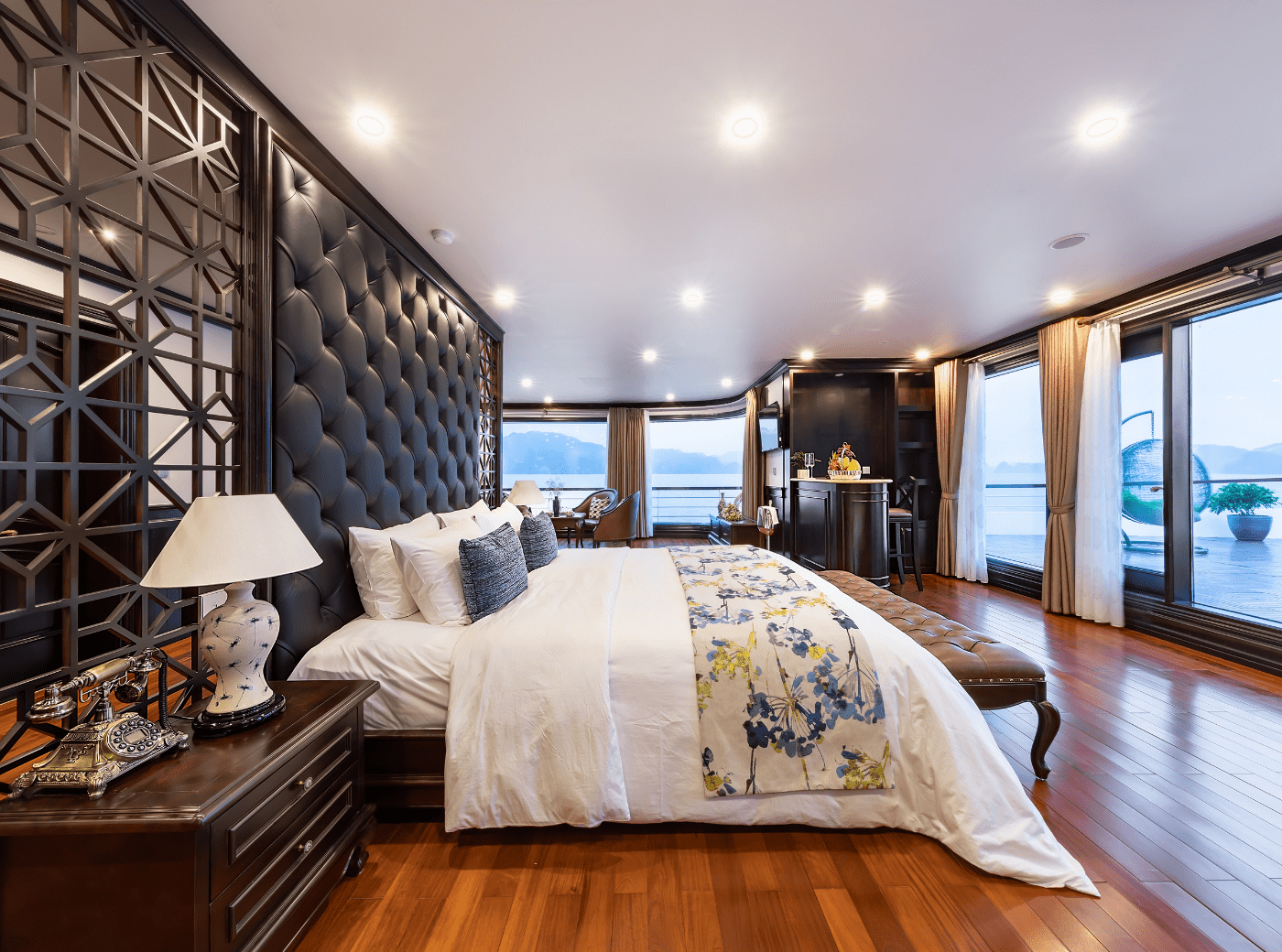 of Lan Ha Bay. Immersing yourself in music, enjoy a drink from the bar when