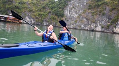 Check-in and get welcome drink. Lunch while cruising through amazing lime stone rocks like duck’s islet, Ba Trai Dao lagoon, Cua Van former fishing village. Kayak and swim at Ba Trai Dao.