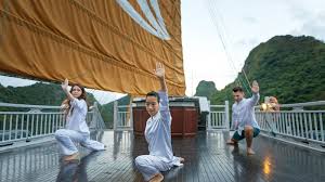 | 6.30 | Start the morning with a relaxing Tai Chi session on the Sundeck. | | 7.00 – 7.30 | Rejuvenate with a cup of coffee or tea with some assorted homemade pastries afterwards. | | 7.30 – 8.30 | Relax or Visit Sung Sot Cave, a cave that was discovered by a group of French explorers in 1901 with some magnificent limestone formations and considered as one of the most beautiful caves in Halong bay. | | 8.30 | Enjoy an International A-la-Carte Breakfast Menu. | | 9.30 | Time for checkout and settle all bills. | | 10.30 | Arrive at Tuan Chau Island after cruise. | | 10.30 – 12.00 | A traditional Vietnamese lunch is served at the Paradise Suites Hotel (AppliedONLY for guests booked shuttle bus of Paradise Cruises) | | 12.15 – 12.30 | Shuttle bus back to Hanoi from Halong Bay. |