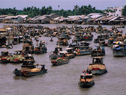 *Water : The city's location on the Saigon River makes it a bustling commercial and passenger port; besides a constant stream of cargo ships, passenger boats operate regularly between Ho Chi Minh City and various destinations in Southern Vietnam and Cambodia, including Vũng Tàu, Cần Thơ and the Mekong Delta, and Phnom Penh. Traffic between Hồ Chí Minh City and Vietnam's southern provinces has steadily increased over the years; the Doi and Te Canals, the main routes to the Mekong Delta, receive 100,000 waterway vehicles every year, representing around 13 million tons of cargo. A project to dredge these routes has been approved to facilitate transport, to be implemented in 2011–14.