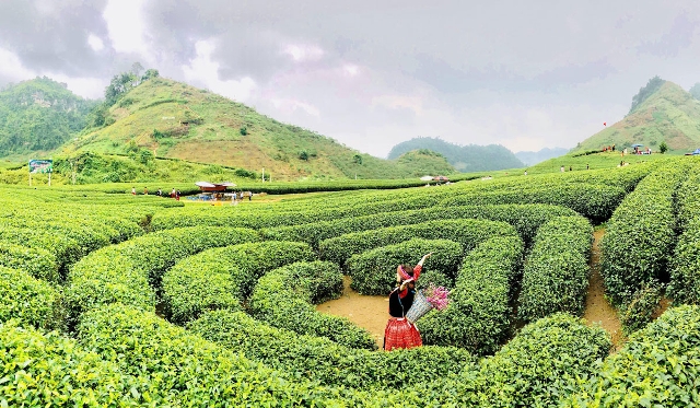 Leave Hanoi for Hoa Binh province in the morning. After 135 km scenic drive, Stop at Mai Chau valley, home to ethnic Thai minority. Cycling around 15 km through rice paddy fields and villages in valley of Mai Chau district. Lunch with specialties at local house on stilts, after that have interaction of singing and dance with Thai people. Afternoon depart for Moc Chau plateau, around 1000 meter above the sea level. Have photo stop at Loong Luong village, where is beautified by peach and plump forests. Stay deep in green color of Moc Chau tea plantation. Check in hotel or homestay at Moc Chau. Dinner and free.